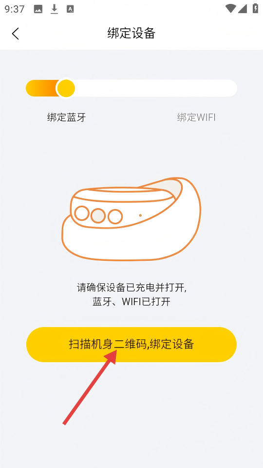 2、在【绑定设备】页面,点击【扫描机身二维码,绑定设备】按钮来绑定设备。