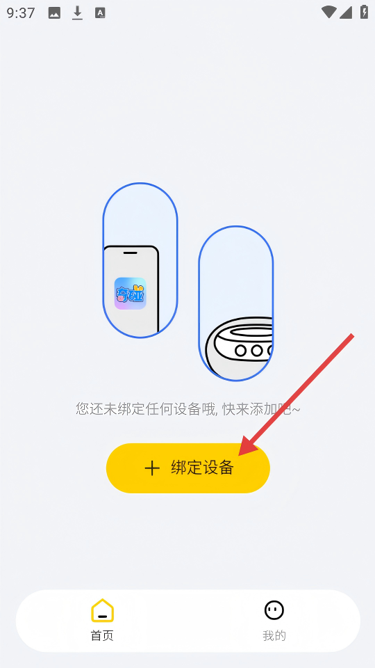1、进入应用首页,点击【+绑定设备】按钮,可进入设备绑定流程。
