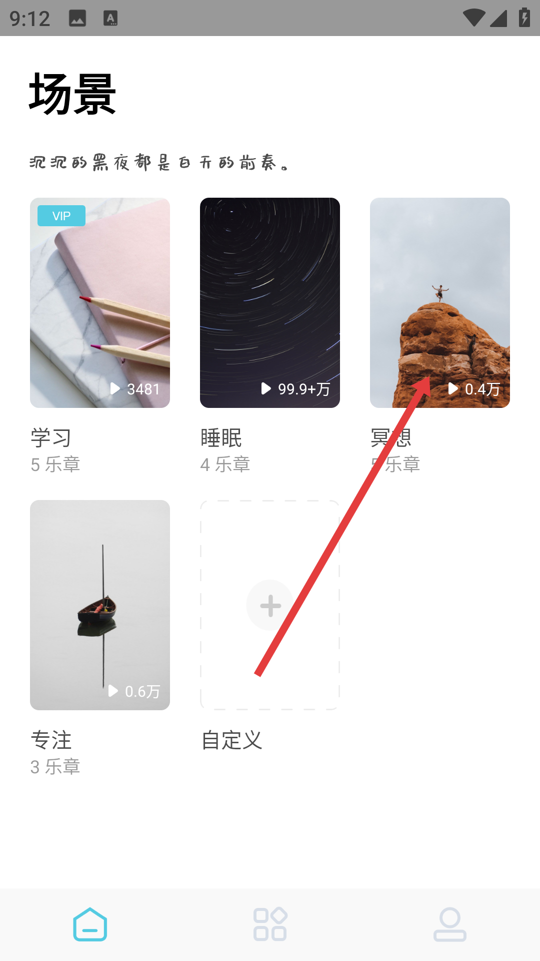 2、在【场景】页面中,找到并点击【冥想】选项,进入冥想场景界面。
