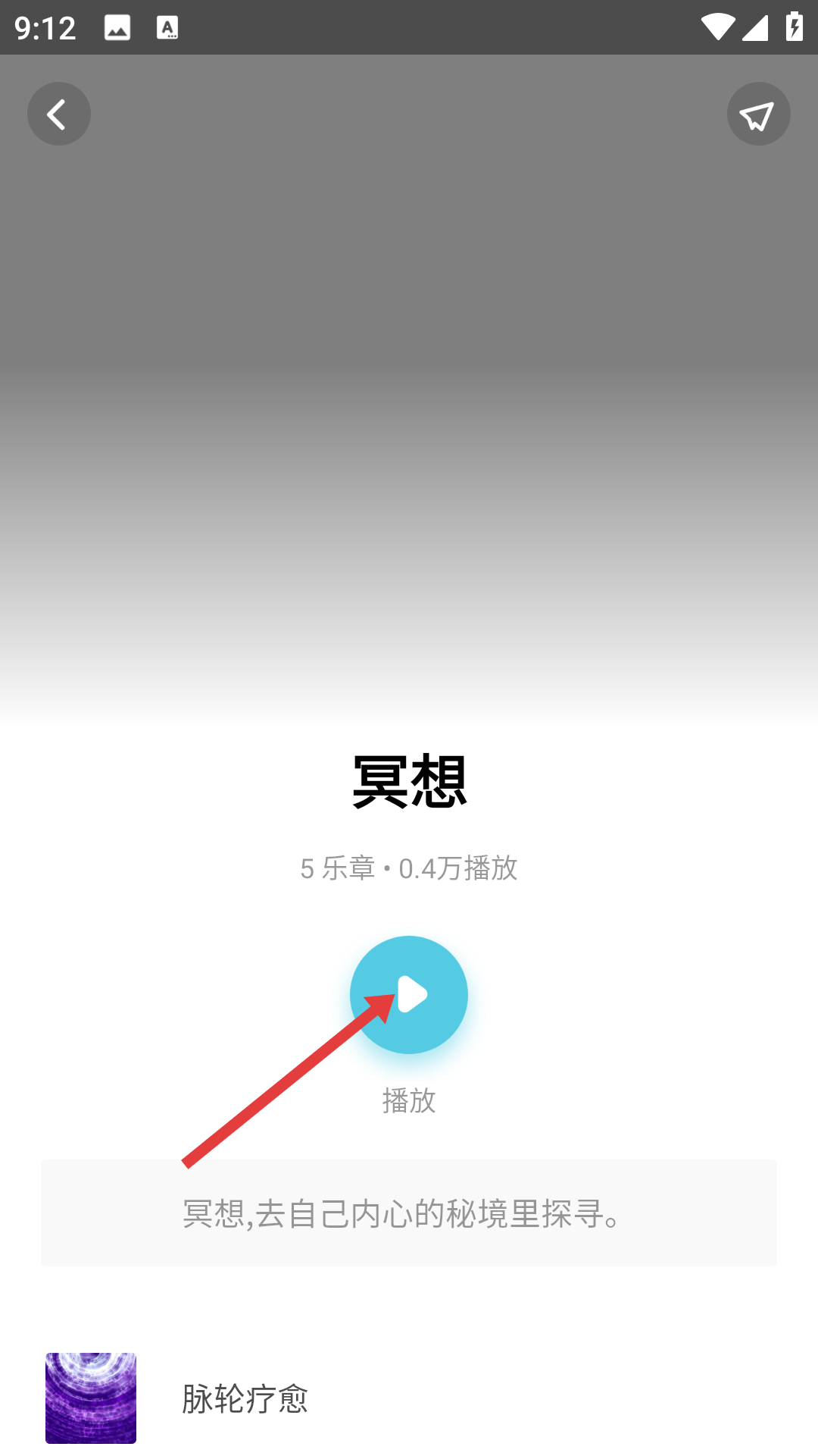 3、进入【冥想】页面后,点击中间蓝色的【播放】按钮,即可开始冥想相关内容的播放。