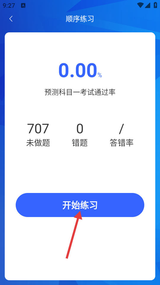 3、在驾考题库中,点击【开始练习】,即可开始刷题。