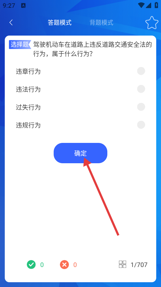 4、做题时,在答题模式下选择题目答案,然后点击【确定】,完成该题作答。