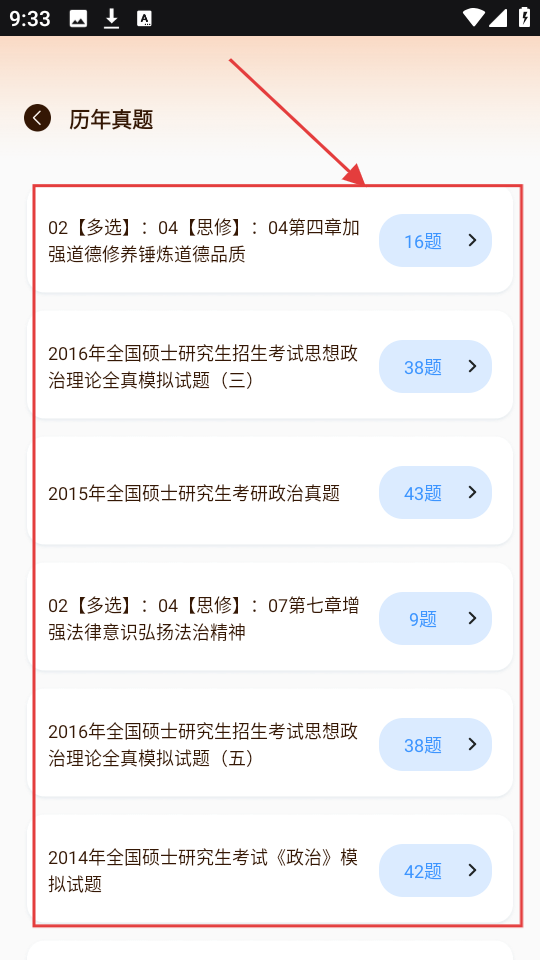 4、在历年真题页,选目标真题,如【2016年全国硕士研究生招生考试思想政治理论全真模拟试题(三)】,进行真题练习。
