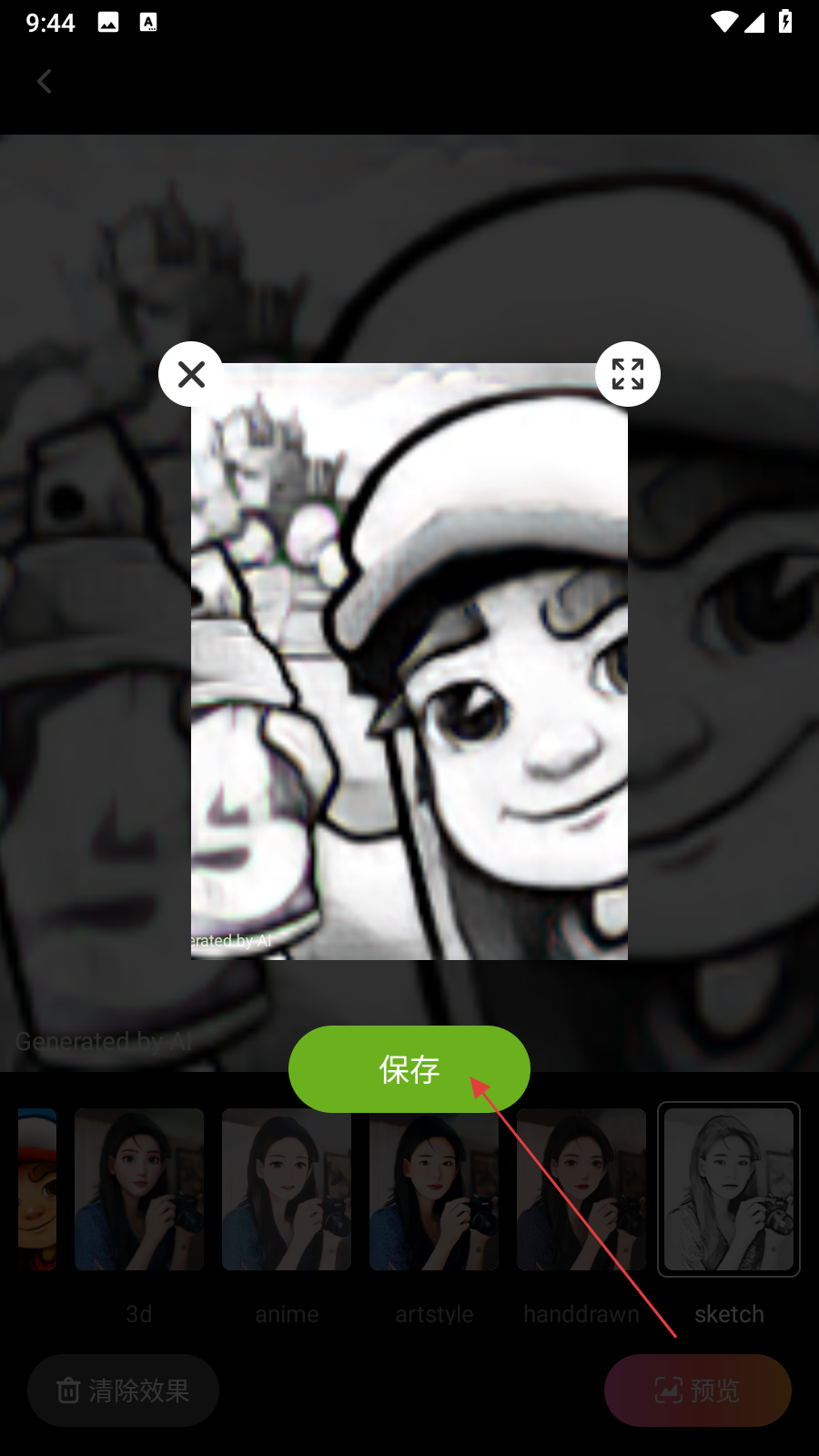 4、对预览效果满意后,点击【保存】,即可将制作好的卡通人像图片保存下来。
