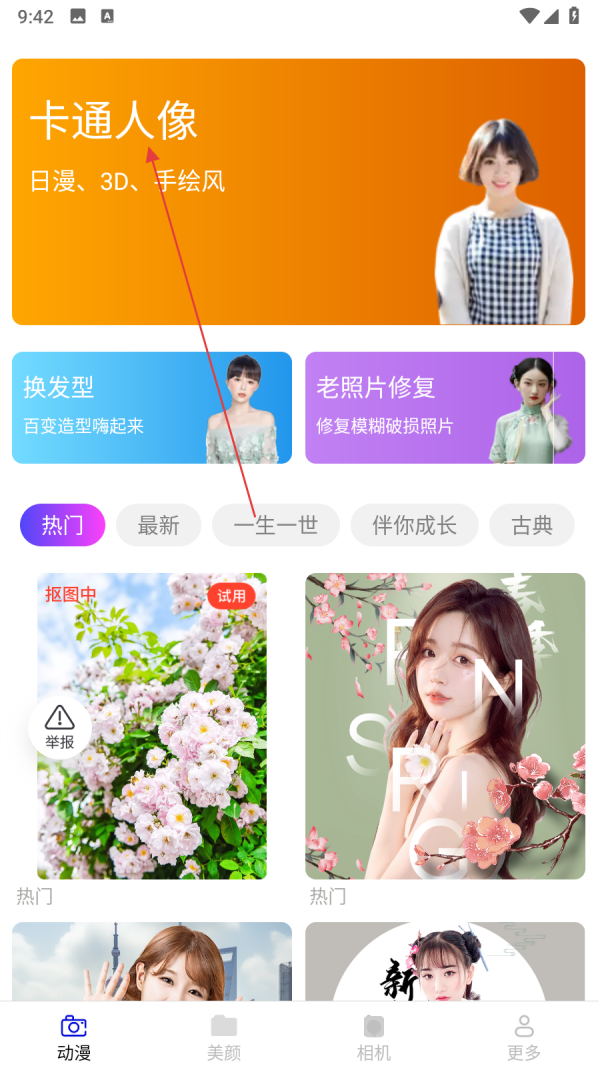 1、进入软件界面,点击【卡通人像】功能板块,开启卡通人像制作流程。