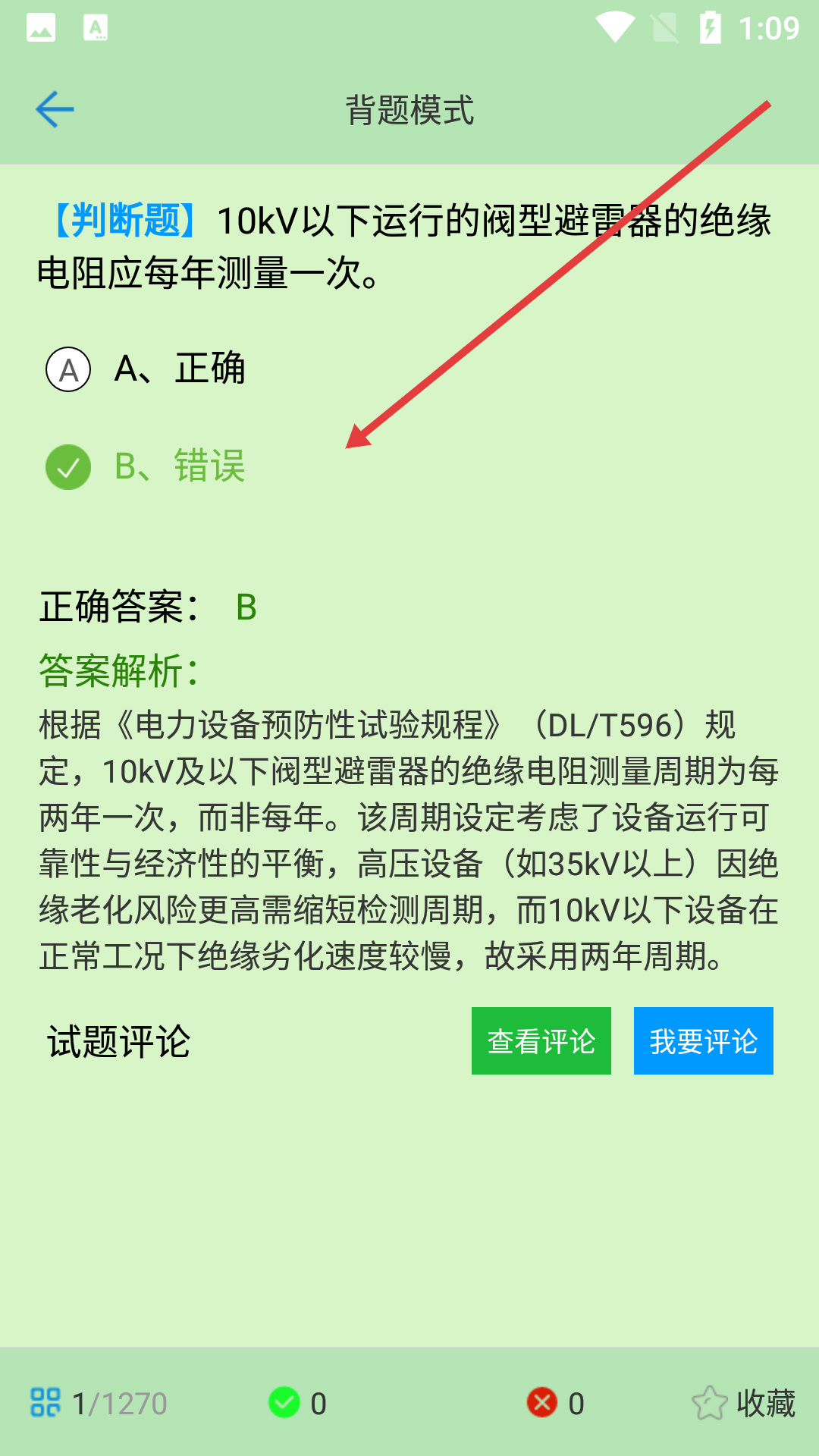 4、进入“背题模式”后,即可查看题目、选项、正确答案及解析,进行知识点背诵学习。