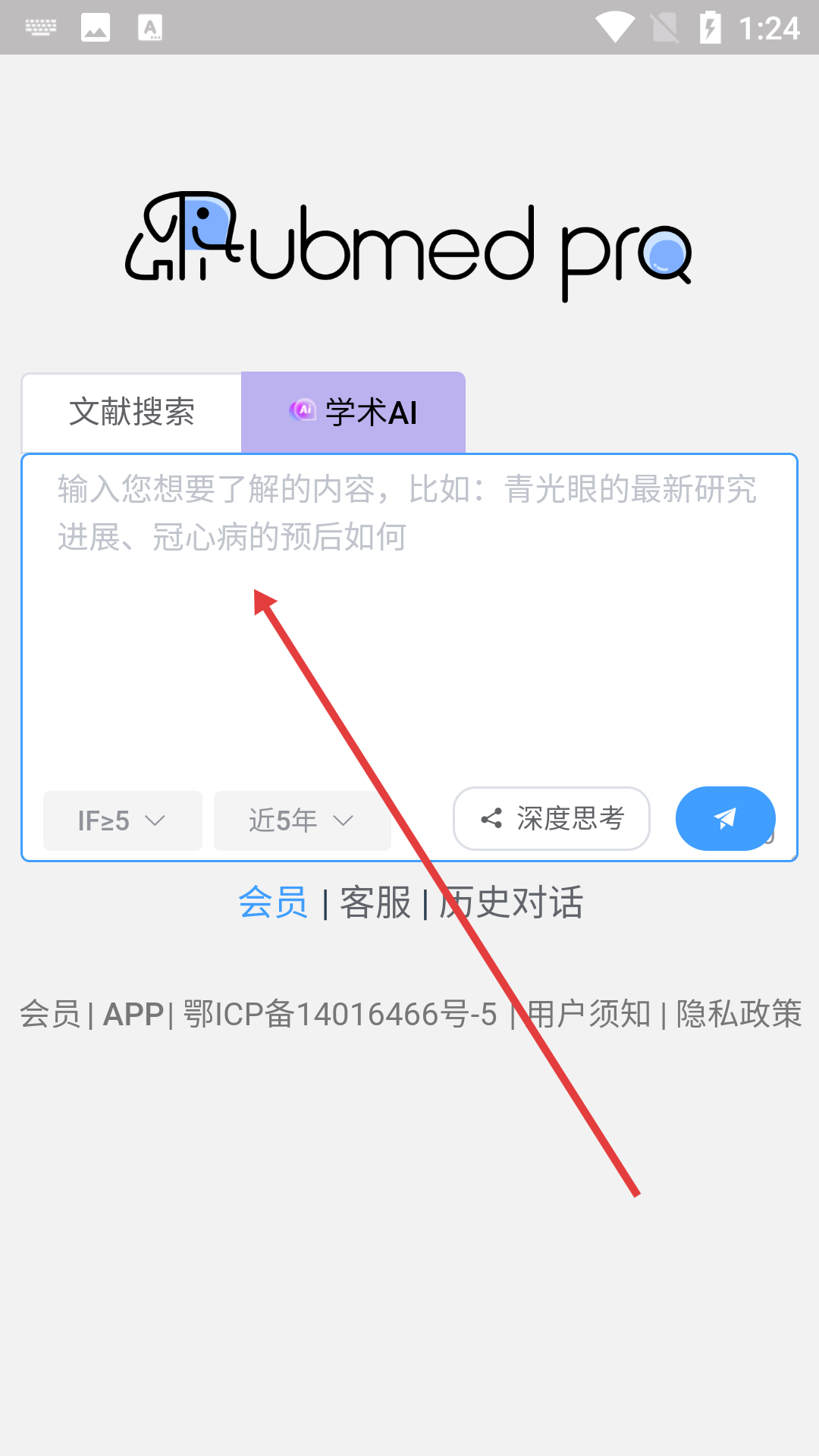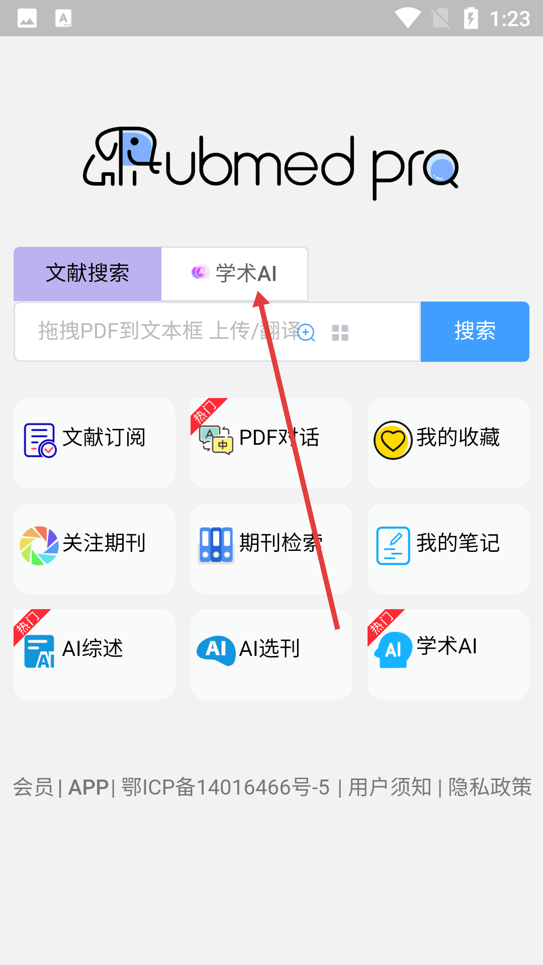 1、打开Pubmed-pro应用,点击【学术AI】选项。