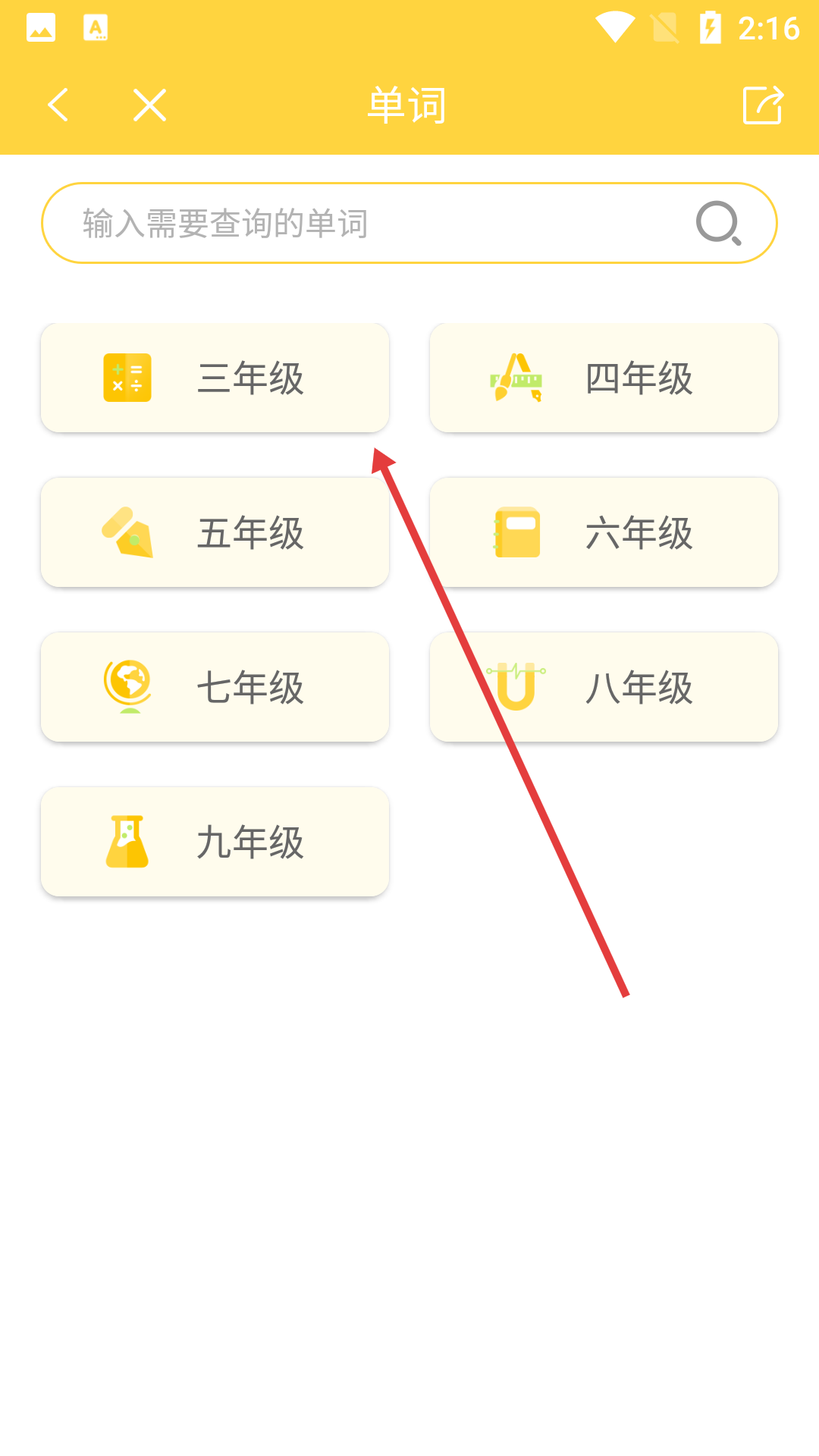 1、在“单词”页面,点击对应年级(如【三年级】)。