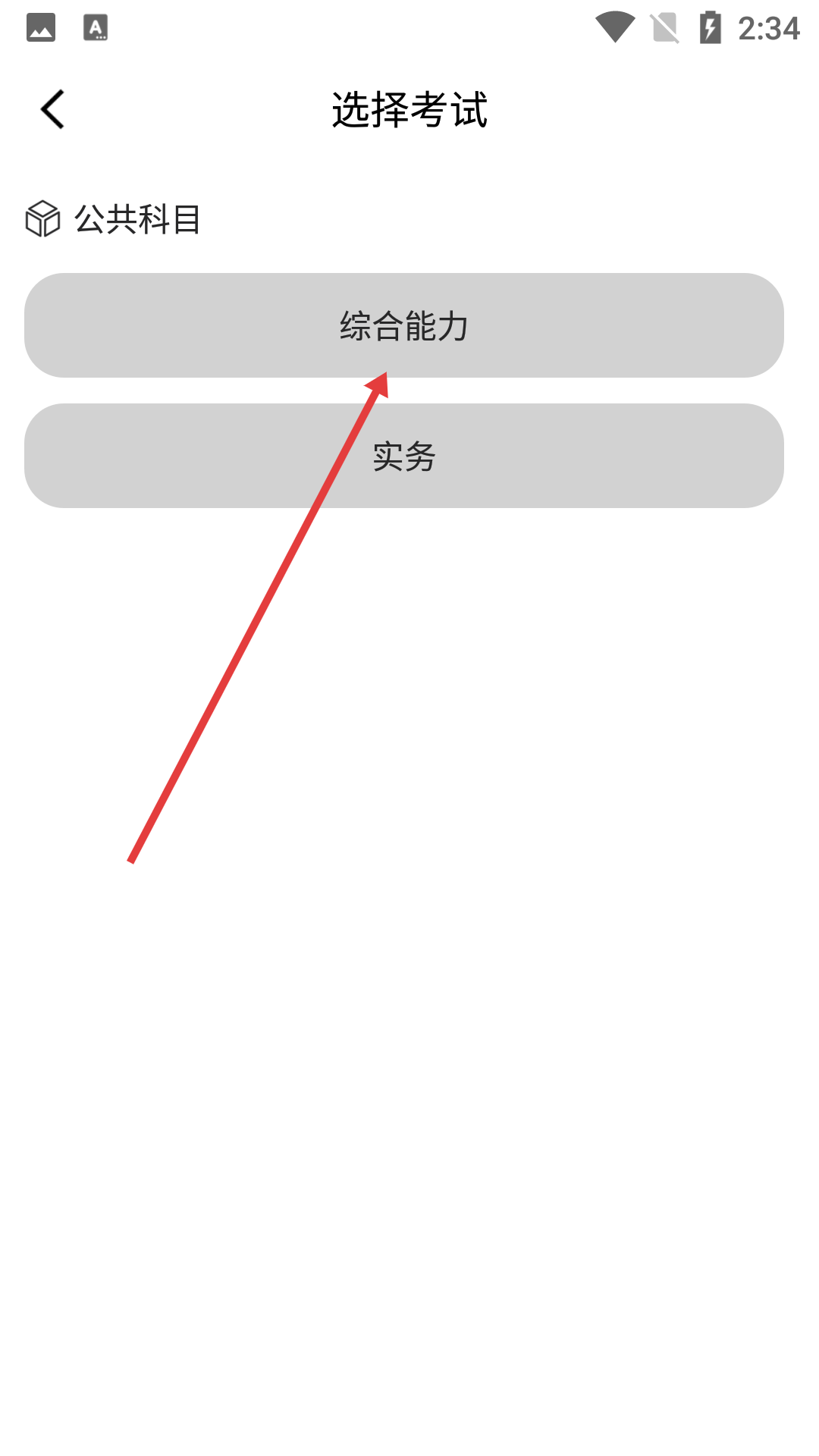 2、进入“选择考试”页面后,选择公共科目(如【综合能力】)。