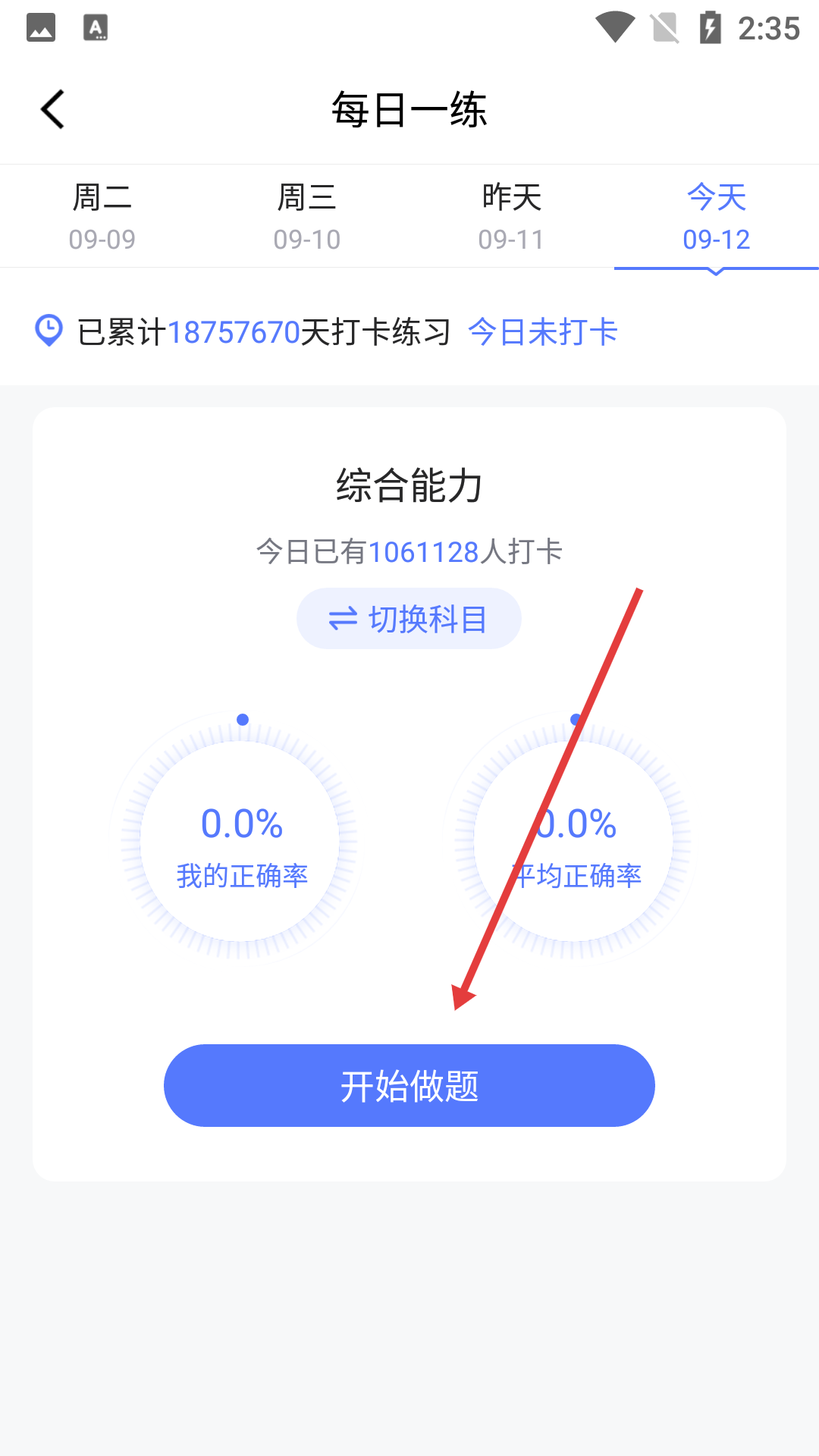 3、在“每日一练”页面,点击【开始做题】按钮。