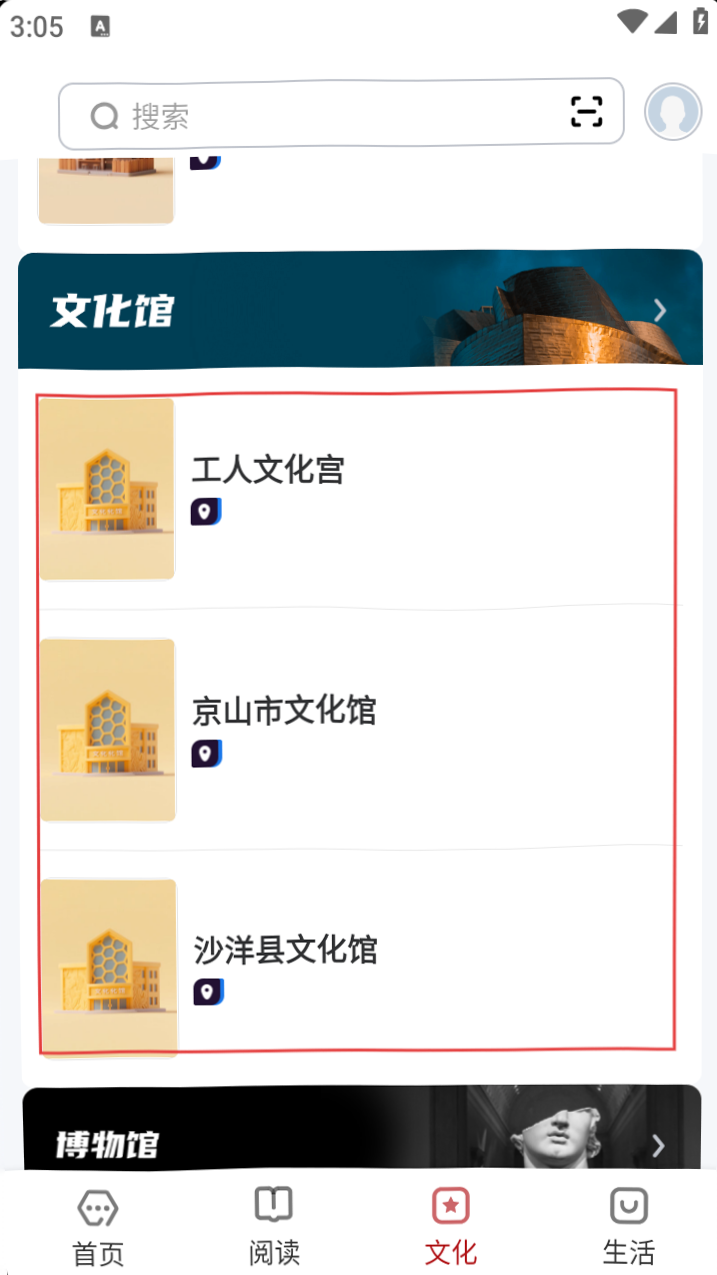 2、在文化页面,找到【工人文化宫】选项,点击进入其相关内容页面。