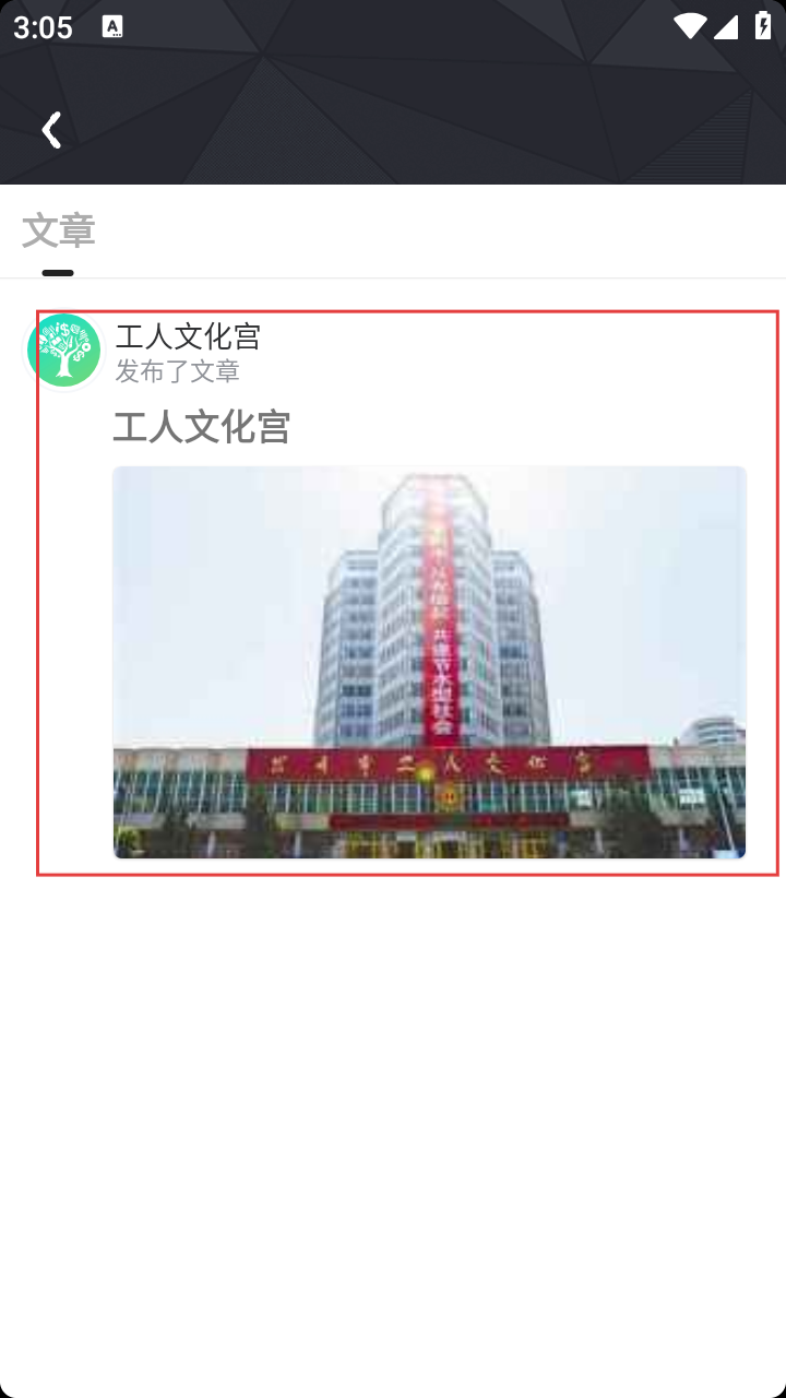 3、在【工人文化宫】相关内容页面,点击进入“工人文化宫发布了文章”的详情页面。