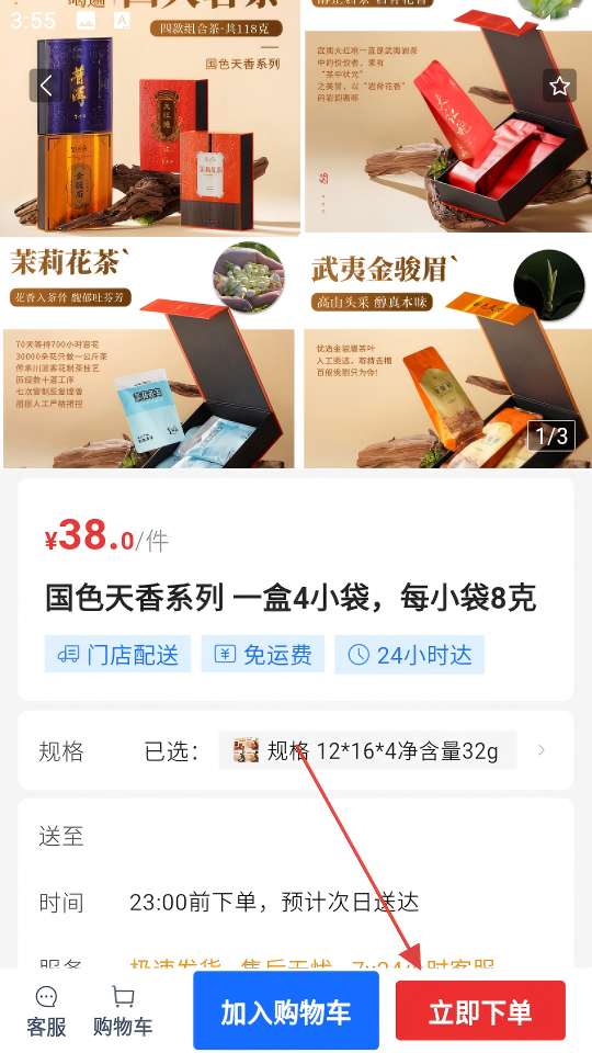 3、进入该商品详情页,确认商品规格等信息后,点击【立即下单】。