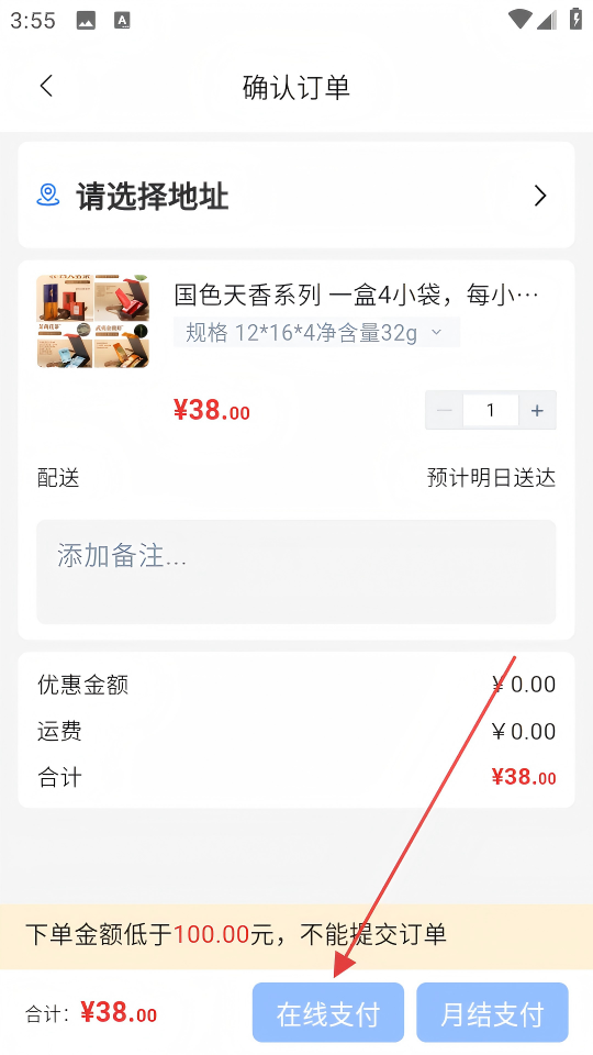 4、在确认订单页面,选择地址等信息,点击【在线支付】完成购买。