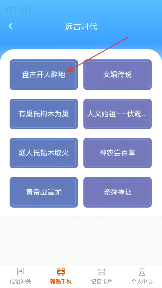 3、进入远古时代页面后,选择想要学习的历史传说,如“盘古开天辟地”。