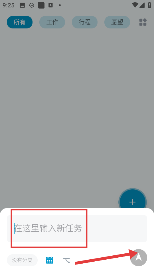 4、在任务输入框中,输入对应的任务内容,然后点击发送按钮添加任务。