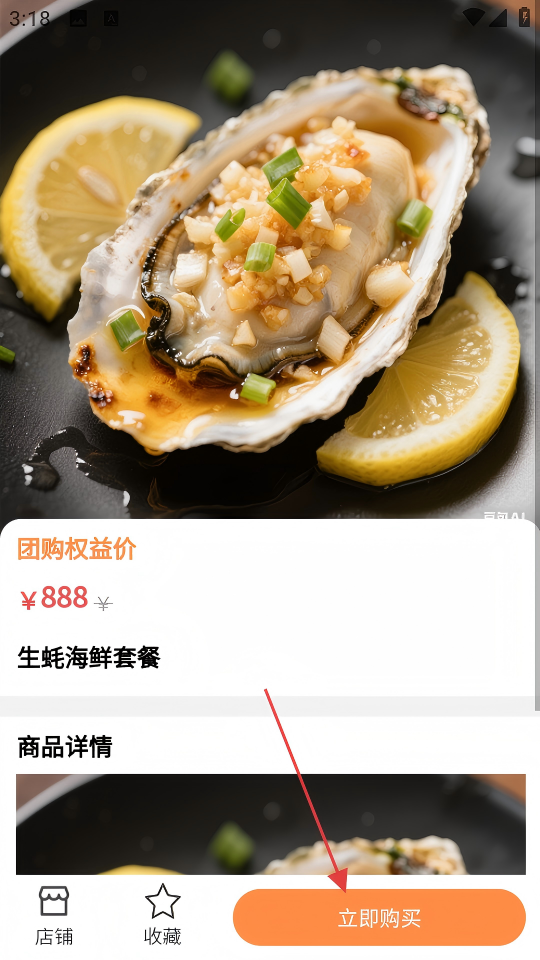 3、进入所选美食详情页,点击【立即购买】,进入订单提交环节。