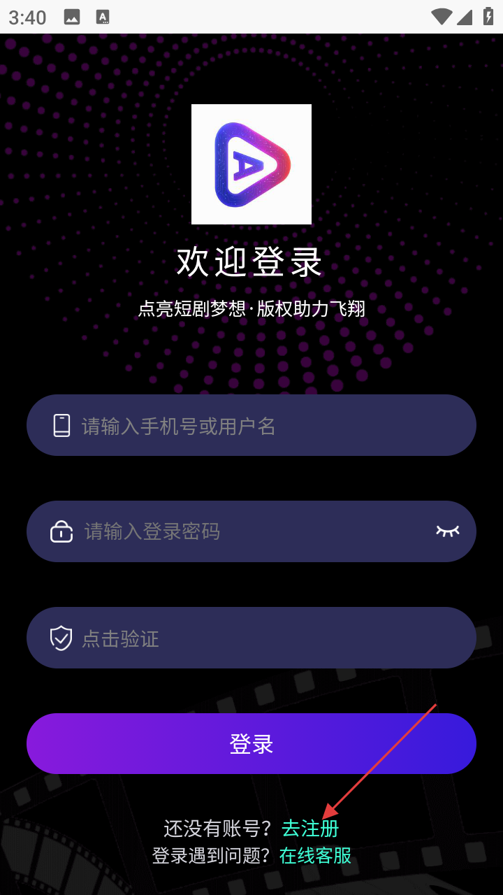 2、在登录页面中,找到并点击【去注册】选项,跳转至应用注册页面。
