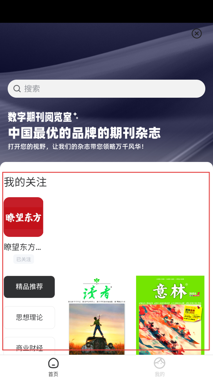 4、在数字期刊阅览室页面,可查看包含《瞭望东方》《读者》《意林》在内的各类期刊杂志,按需点击即可浏览具体内容。