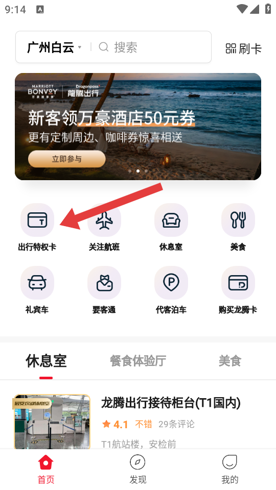 1、打开龙腾出行APP,在首页点击【出行特权卡】选项,进入出行特权卡页面。