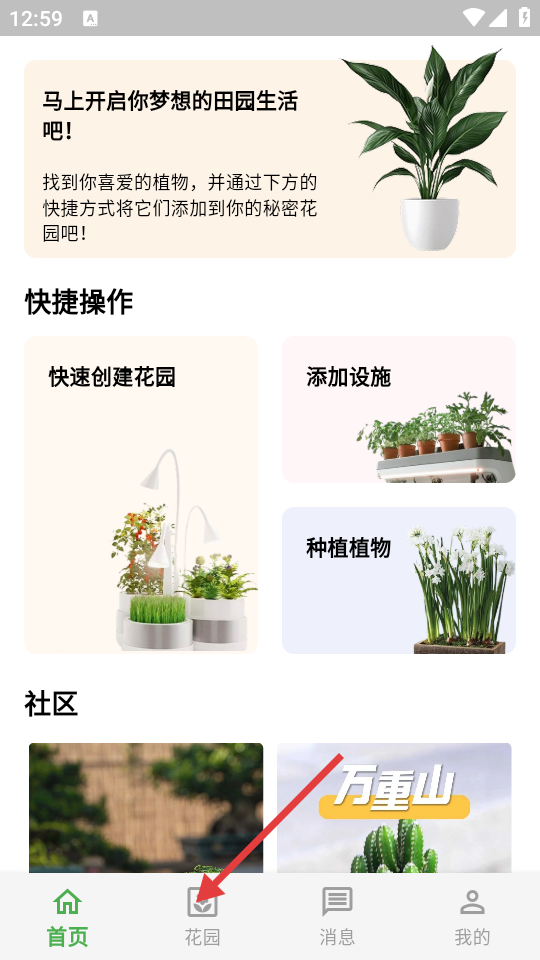1、打开APP,点击底部【花园】选项,进入花园页面。