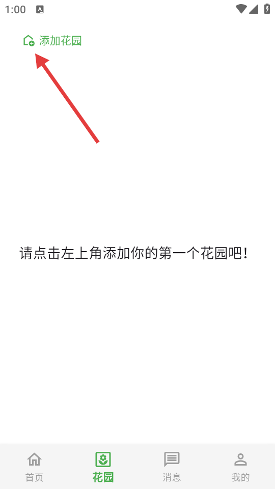 2、在花园页面,点击左上角【添加花园】按钮,进入添加页面。