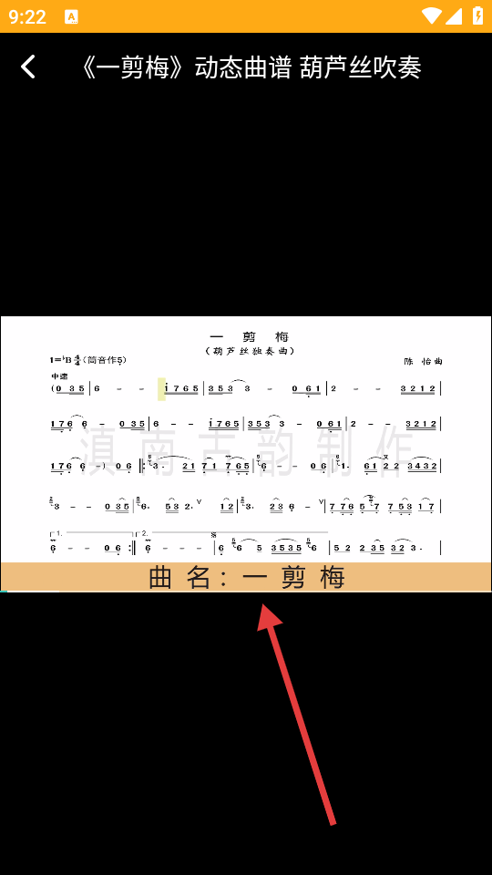 4、进入曲目学习页面后,即可查看《一剪梅》的葫芦丝动态曲谱,跟随曲谱进行葫芦丝吹奏学习。