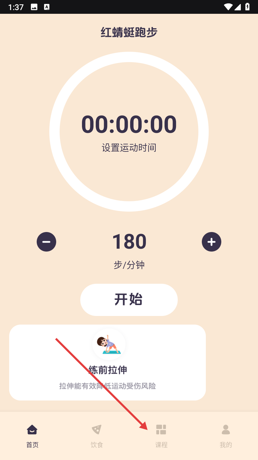1、点击底部【课程】按钮,进入课程页面。