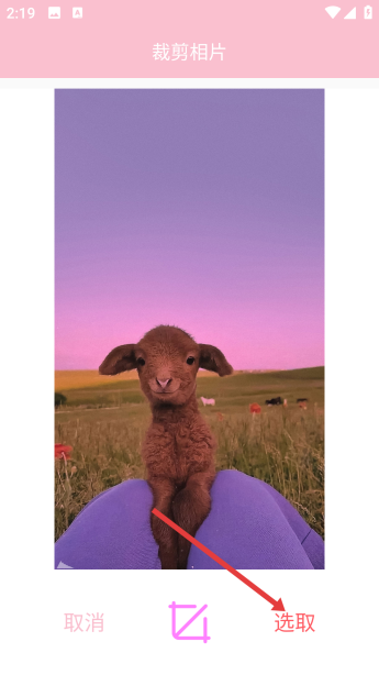 3、进入【裁剪相片】页面,调整好后点击【选取】,确定相片的裁剪范围。