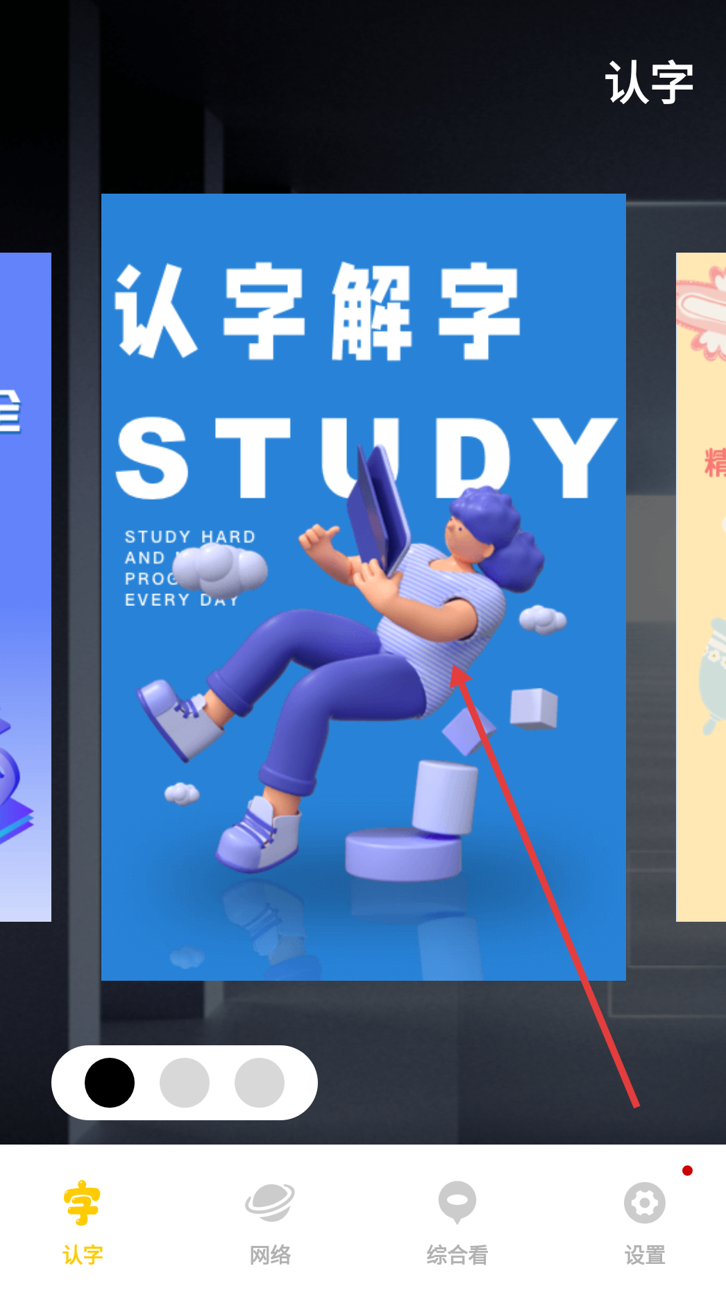 1、进入软件,点击底部【认字】选项,进入【认字解字】相关页面,开启认字学习。