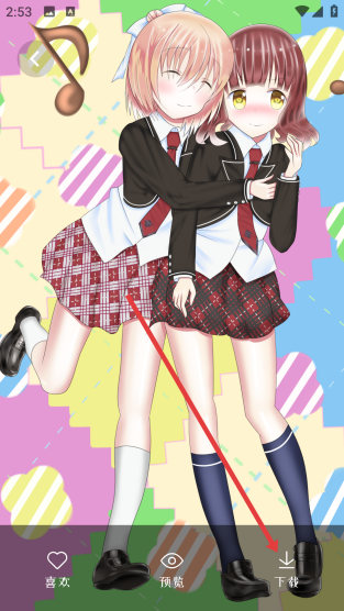 4、在图片详情页,点击底部的【下载】按钮,即可保存该动漫图片。