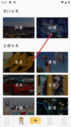 1、打开软件后,在底部导航栏找到【分类】按钮并点击,进入分类页面。