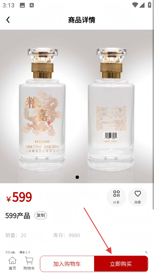 3、购物操作便捷:支持线上将心仪酒水加入购物车,在手机端完成支付,适配移动场景下的高效购物需求。