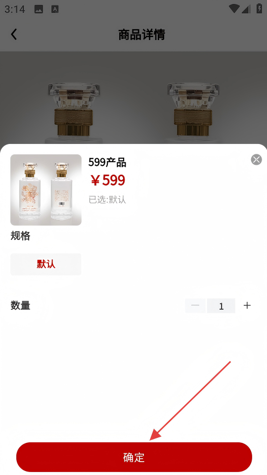 4、在商品规格确认窗口,点击【确定】按钮,完成购买操作。