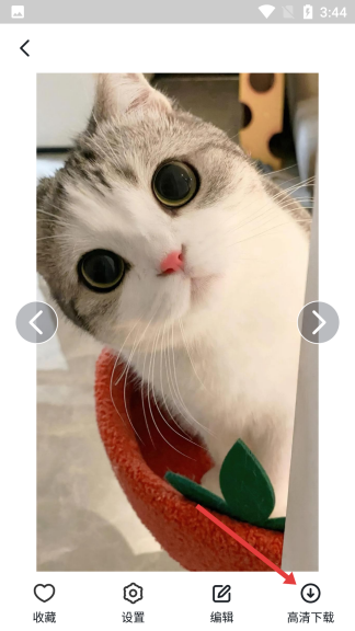 4、在壁纸详情页面,点击右下角的【高清下载】按钮,即可下载该猫咪壁纸。