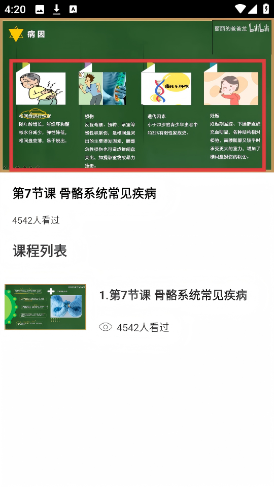 4、可查看【第7节课骨骼系统常见疾病】,了解病因等相关内容。