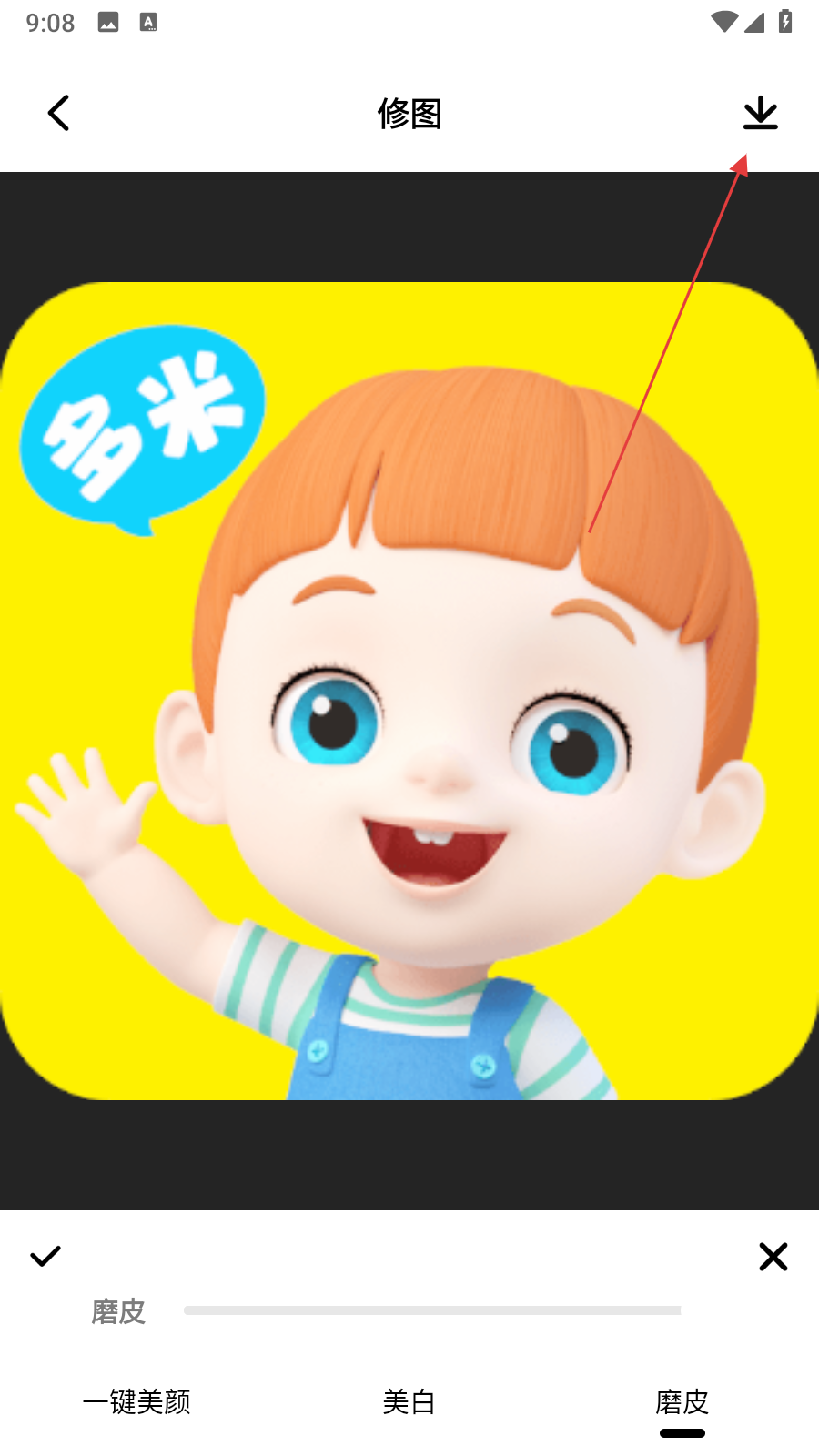 4、美颜效果调整好后,点击页面右上角的【下载图标】,即可保存美颜后的图片。