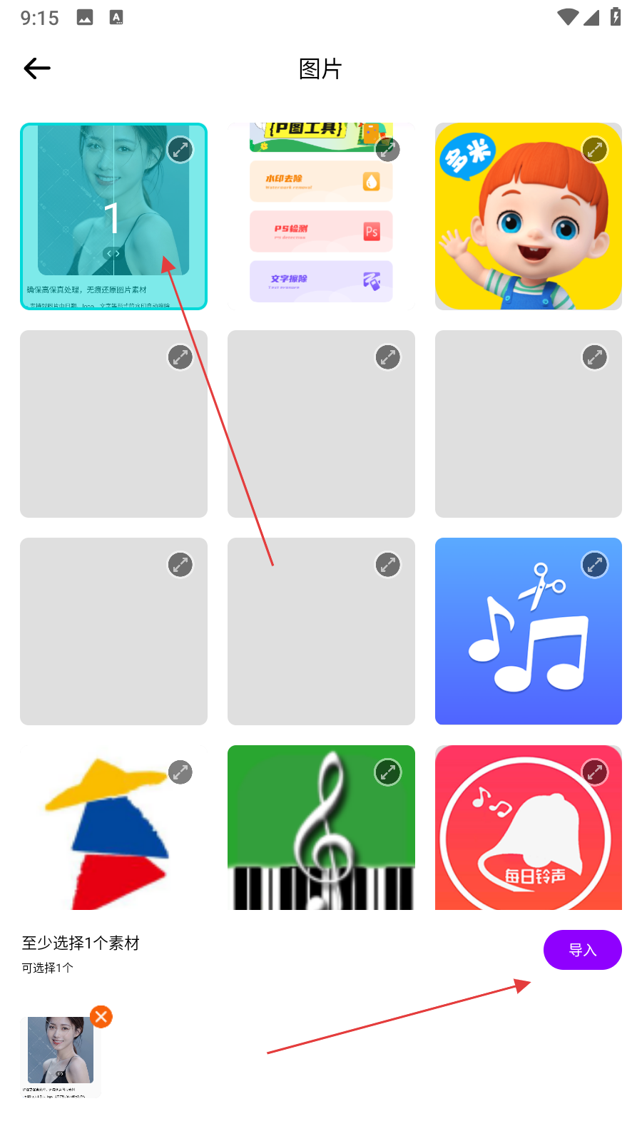 3、在图片选择页面,挑选【要去除水印的图片】,选好后点击【导入】。