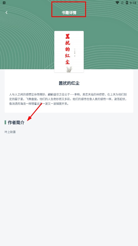 3、进入书籍详情页后,可浏览【嚣扰的红尘-书籍简介】和【作者简介】等内容。