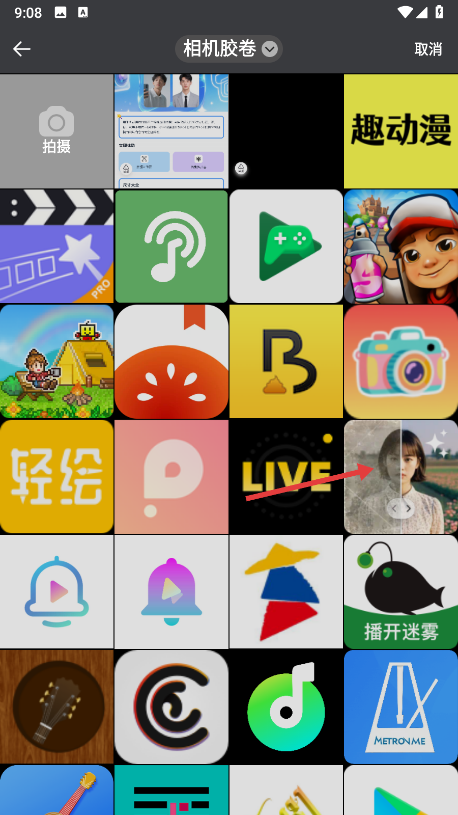 3、在照片选择页面,从相机胶卷中选择【要制作证件照的照片】。