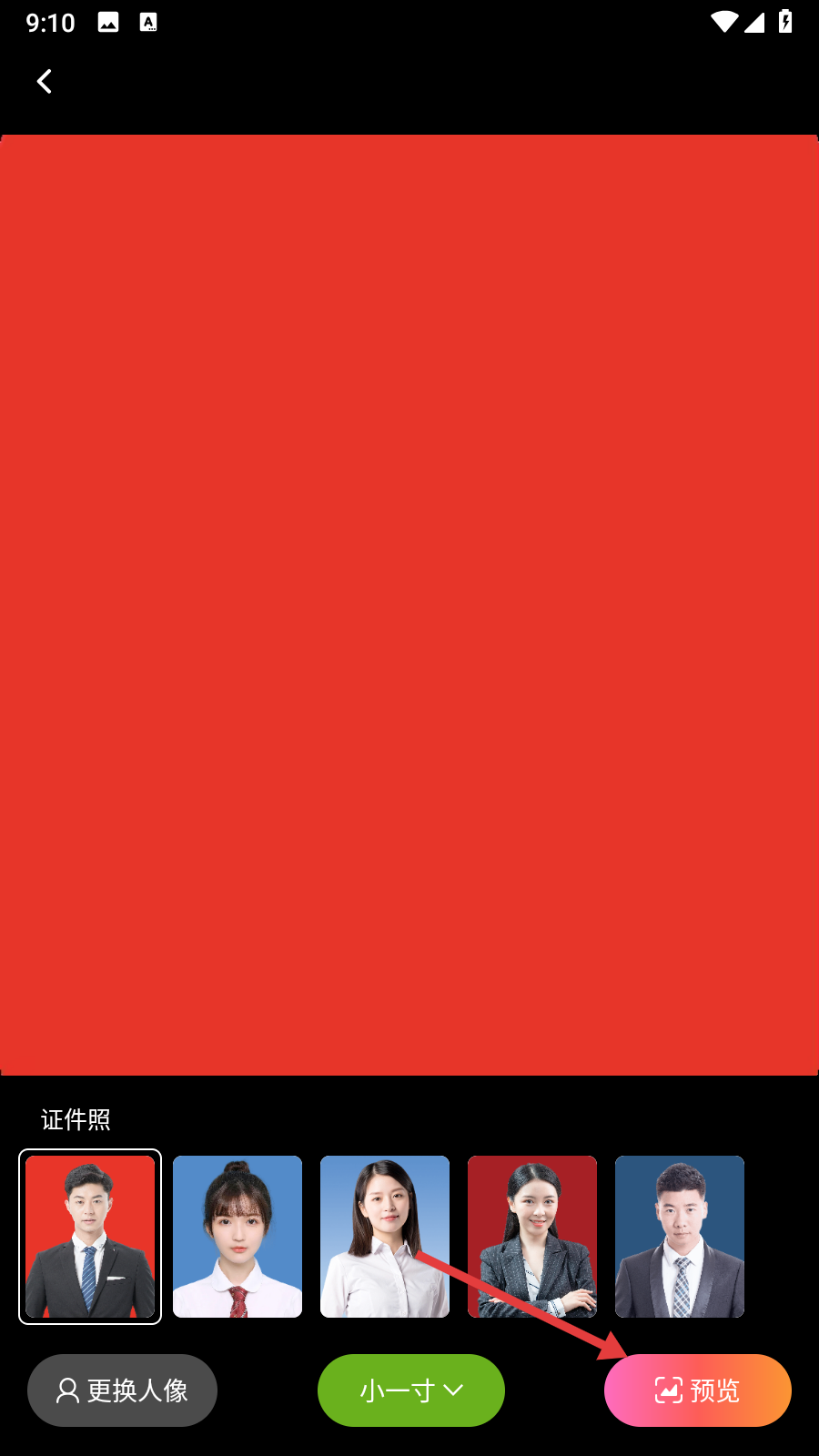 4、在证件照制作页面,可选择证件照样式等,之后点击【预览】按钮,即可查看保存证件照效果。