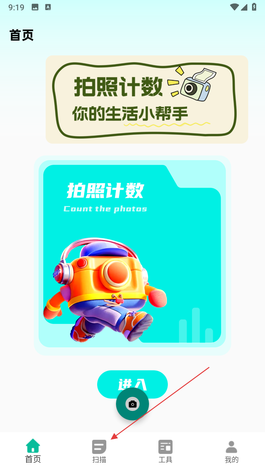 1、在首页,点击底部【扫描】选项,进入扫描功能页面。