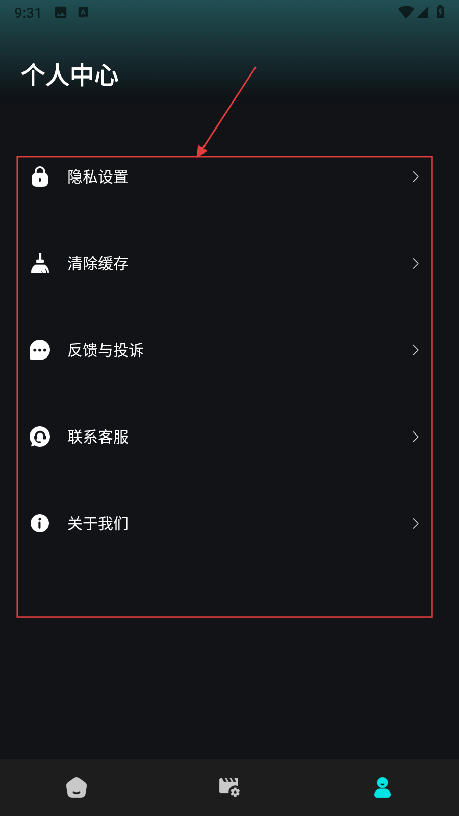 4、进入个人中心,可设置【隐私设置清理缓存,还能反馈投诉、联系客服】,了解关于软件的信息。