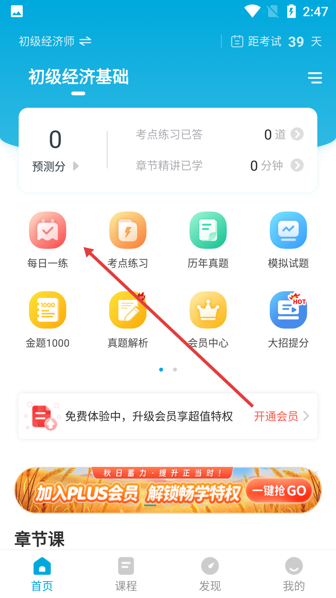 2、进入【初级经济基础】页面,点击【每日一练】图标。