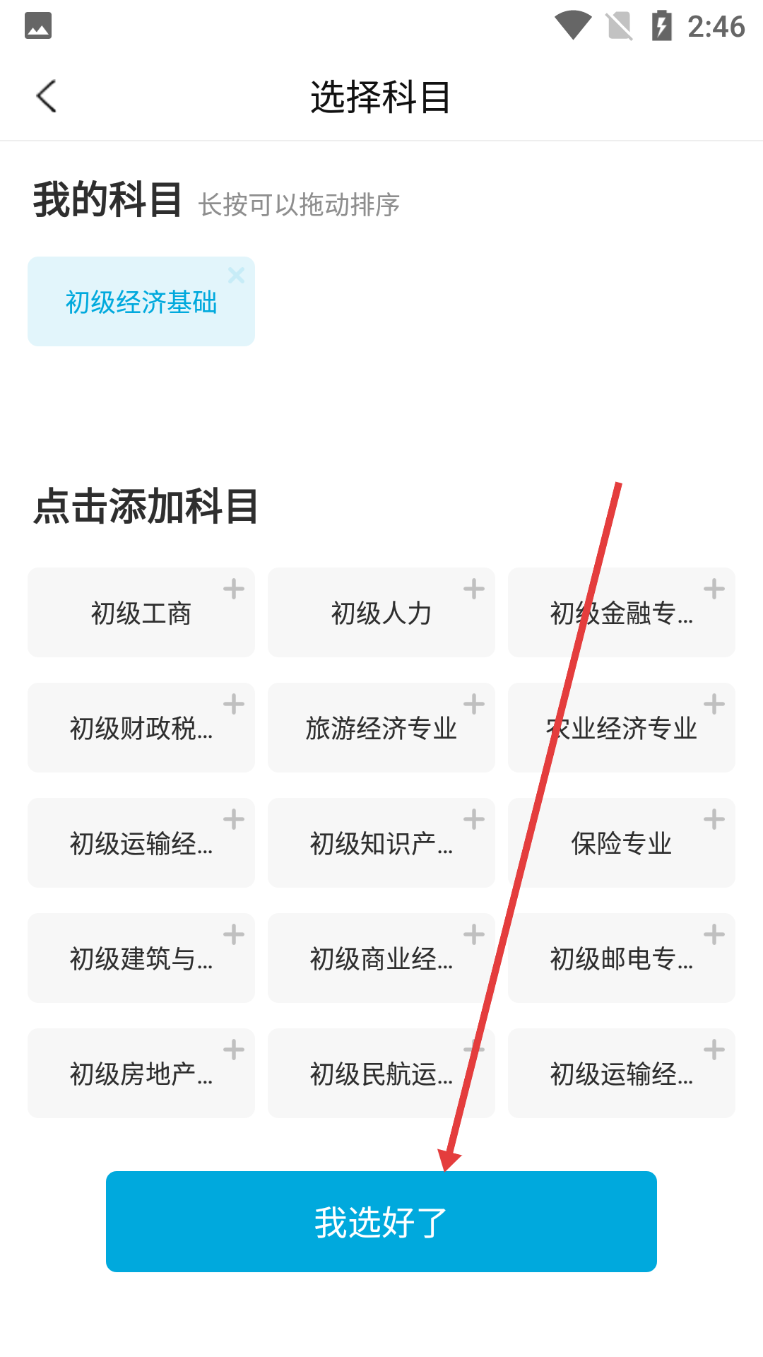 1、在选择科目页面,选好科目后点击【我选好了】。