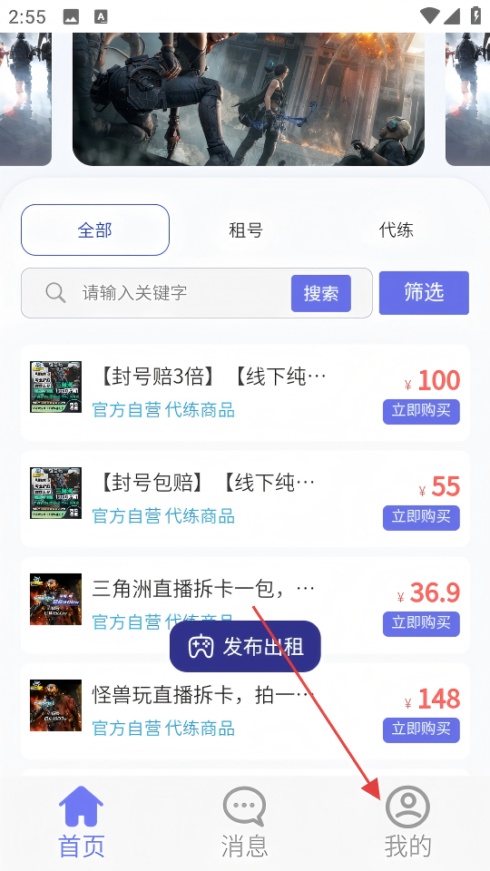 怪兽玩是一款专注游戏账号租赁与代练交易的实用工具,支持用户将闲置游戏账号在线出租,把闲置资源转化为收益,增加额外收入;同时提供大量专业优质的游戏代练商品,用户可自由选购下单,享受专业代练服务。它具备商品搜索功能,能帮助用户快速找到所需代练商品,可及时解决交易过程中的各类问题。