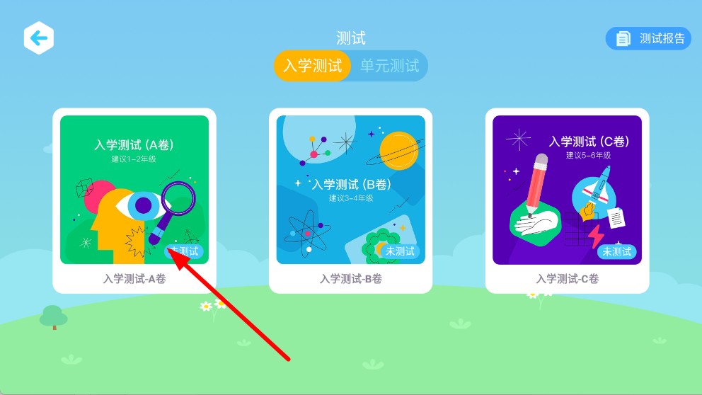 3、接着选择对应的入学测试卷,如【入学测试(A卷)-试卷】。