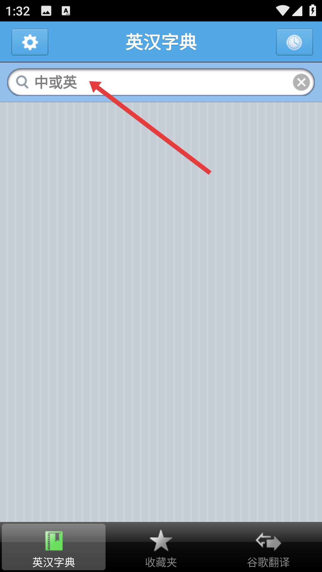 2、点击英汉字典页面的搜索框,准备输入要查询的中或英文内容。