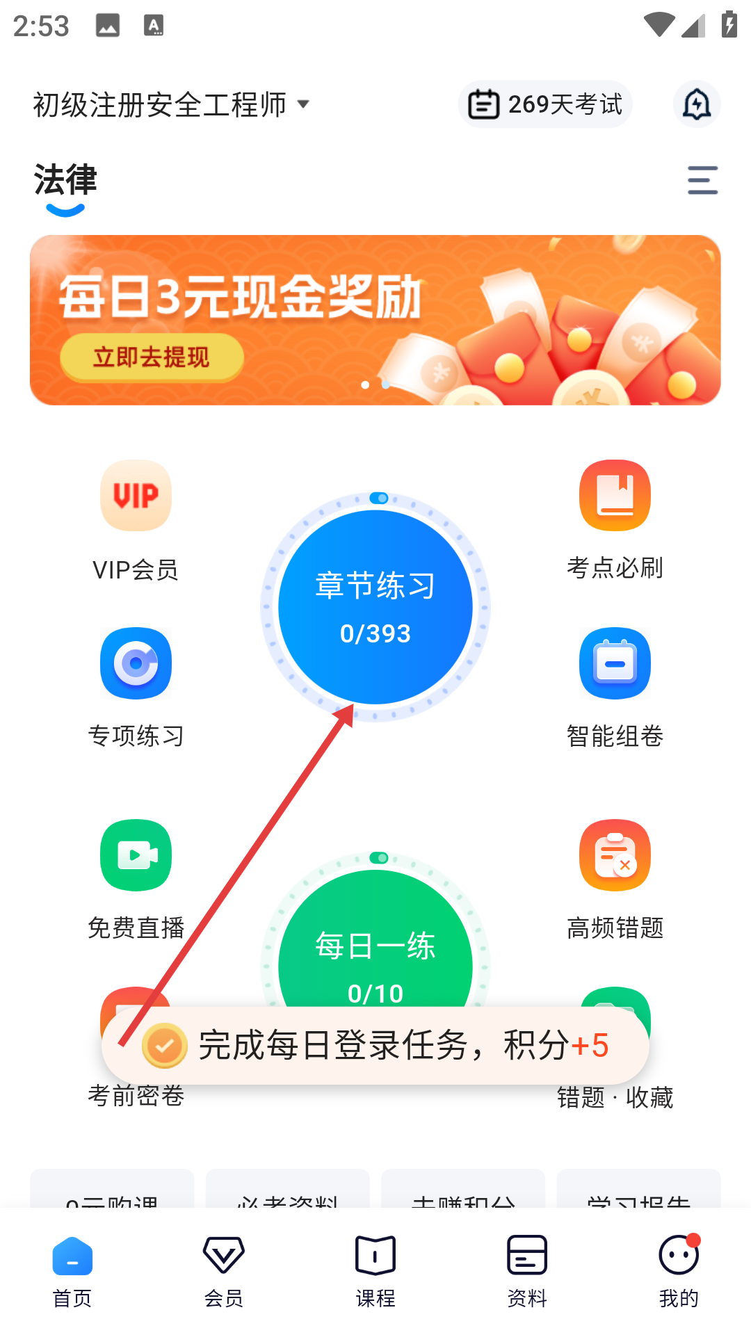 3、进入初级注册安全工程师学习页面,点击【章节练习】。
