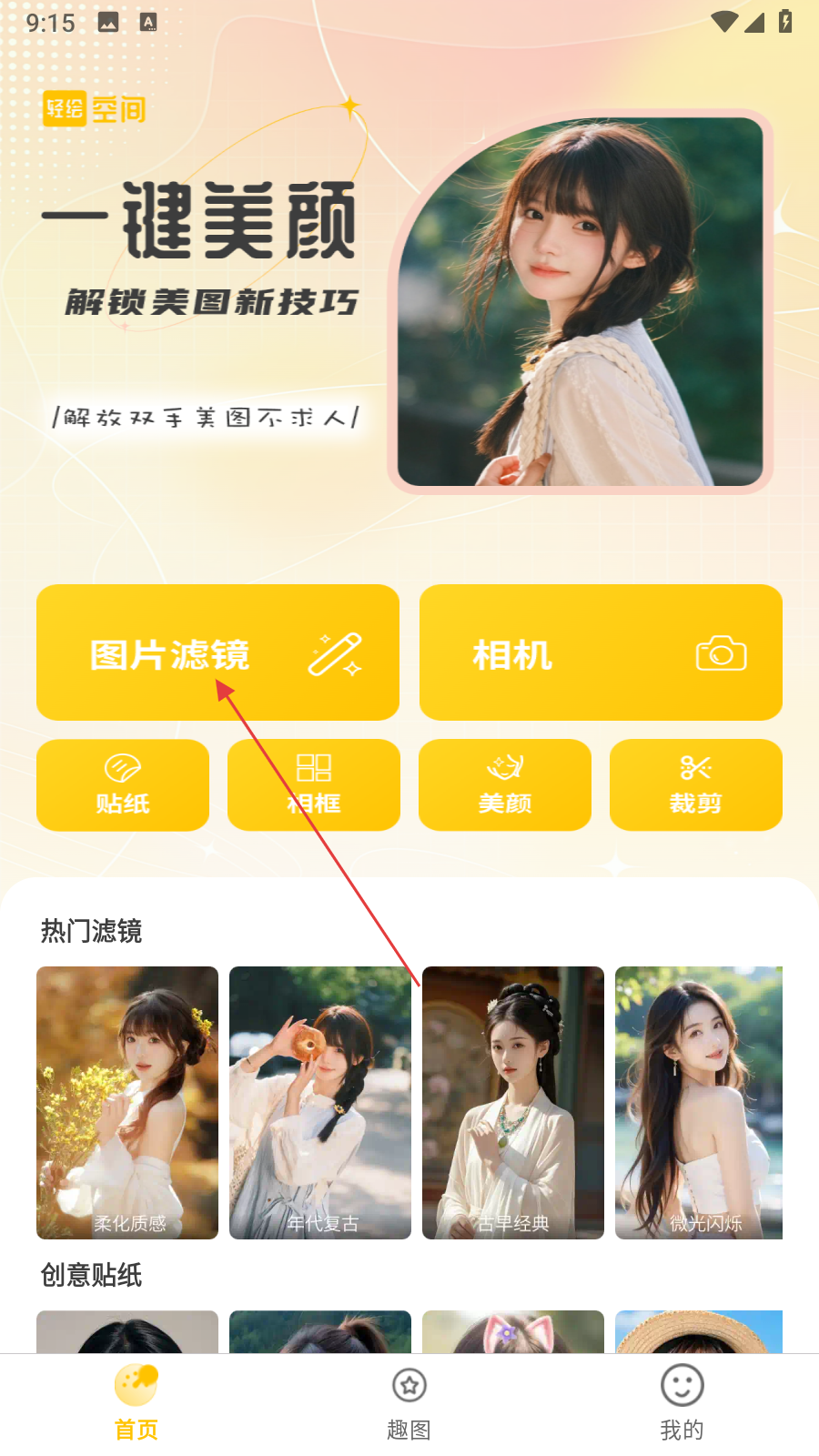 轻绘空间是一款专注于线上美学艺术空间的创作工具,为用户提供全方位的图片美化与创意制作体验。内置强大的美颜相机,支持实时美颜拍照,轻松记录美好生活;丰富的质感滤镜覆盖多种风格,可实时添加,提升图片质感与氛围;海量素材集市与百变模板资源每日更新,方便用户随心切换与套用,激发创作灵感;超多可爱贴纸表情可供自由选择,个性化展示创意。无论是日常记录、节日祝福还是社交分享,用户都能通过简单操作,打造出精美且富有艺术感的图片作品。
